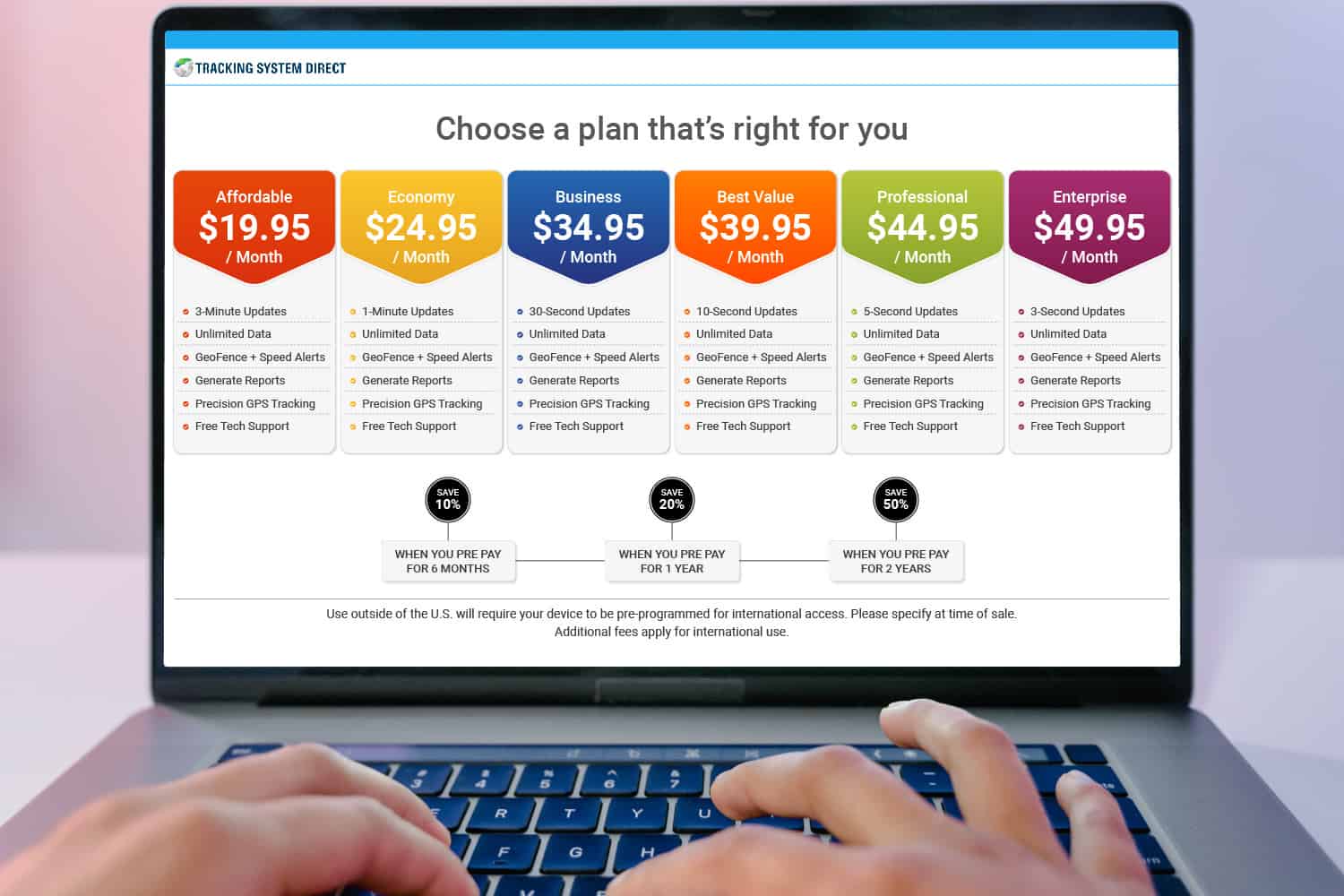 Next, pick a payment plan that works best for you—whether it’s a monthly auto-charge or a prepaid option with up to 50% off. After that, set your tracking intervals. Enter your credit card details, make sure everything’s correct, and hit “Save.”