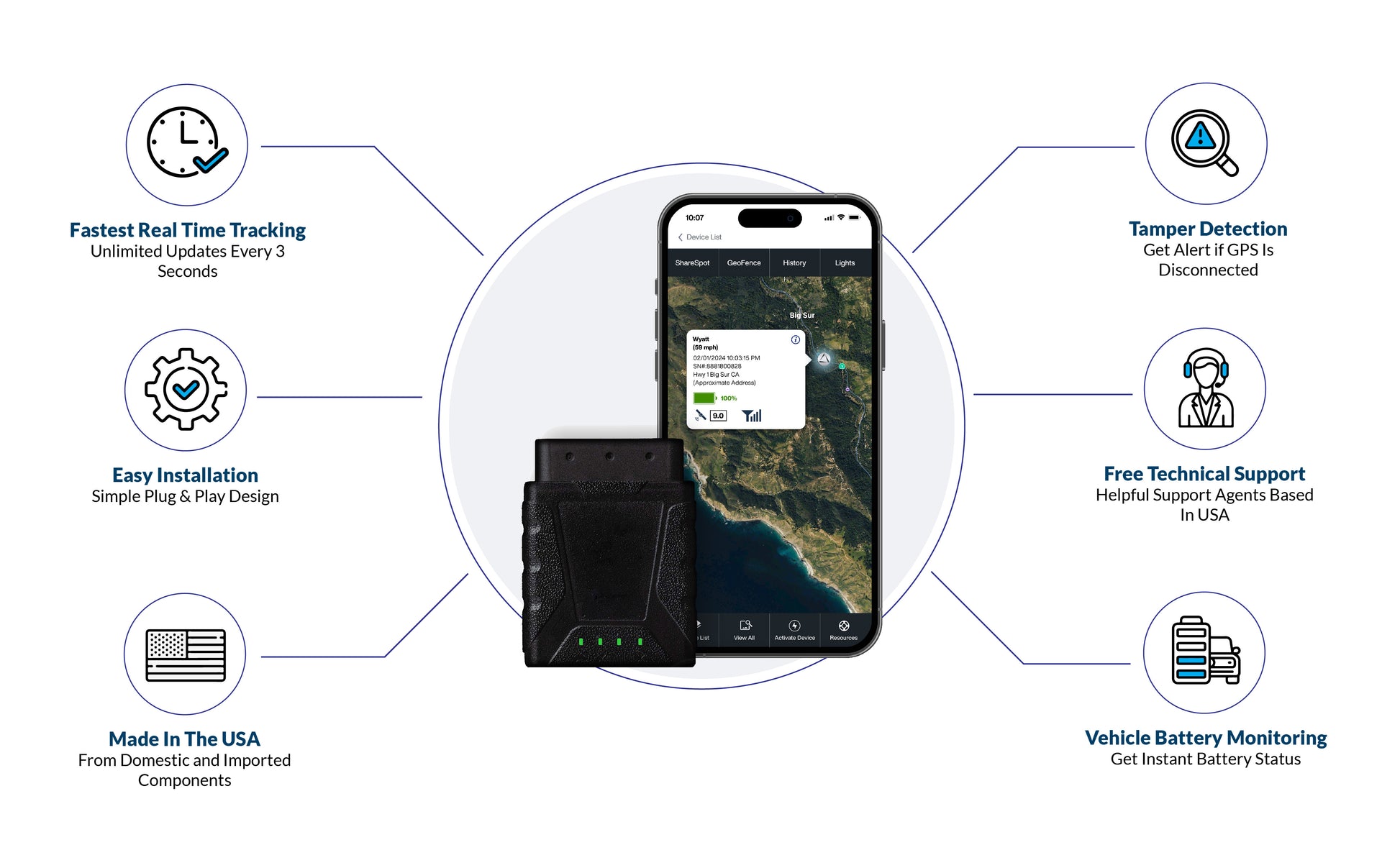 • Easy Setup: Plug it into the OBD-II port for quick, discreet tracking.